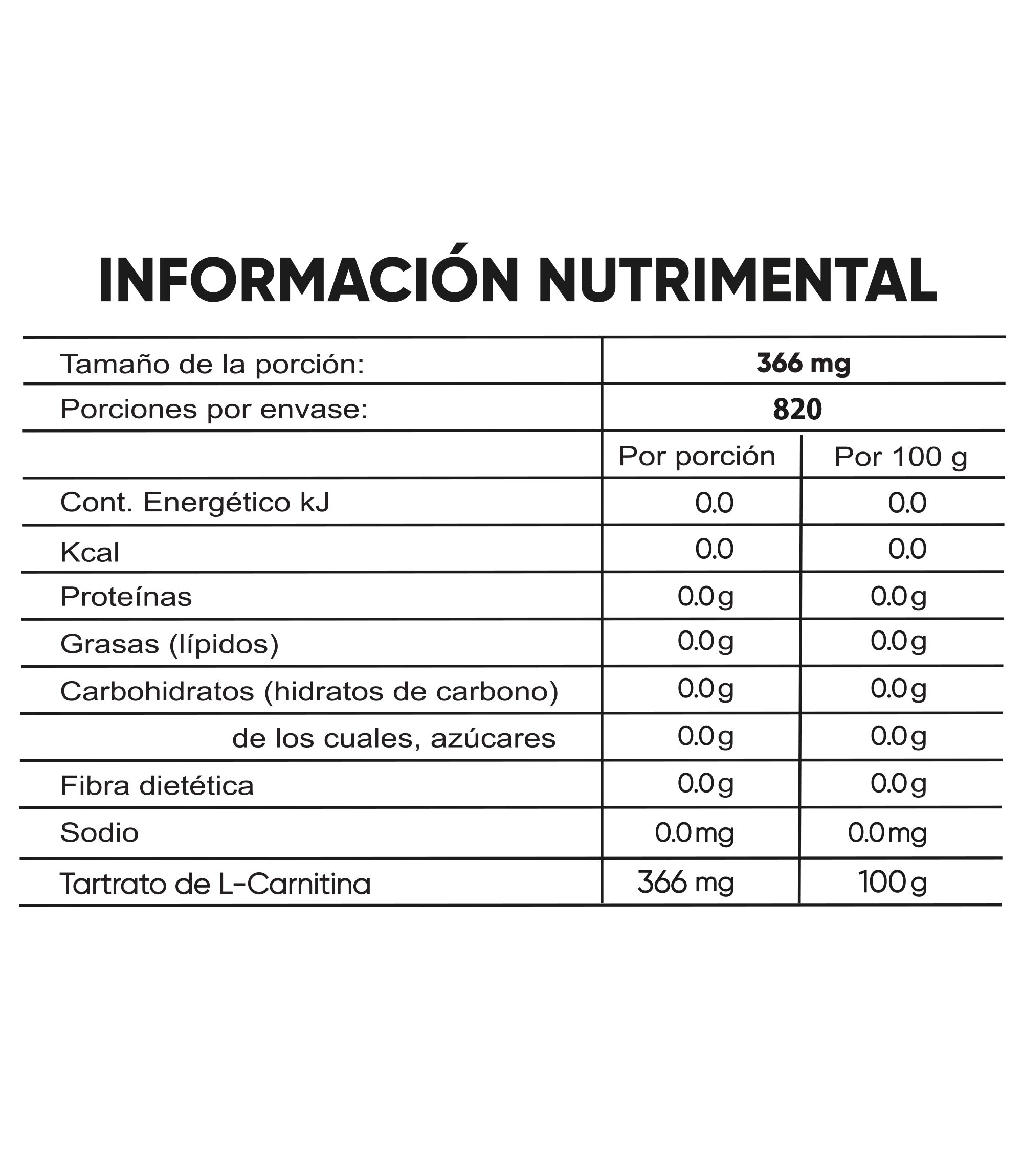 🧪 Pureza Técnica: 100% Tartrato de L-Carnitina, sin conservadores, edulcorantes ni colorantes.