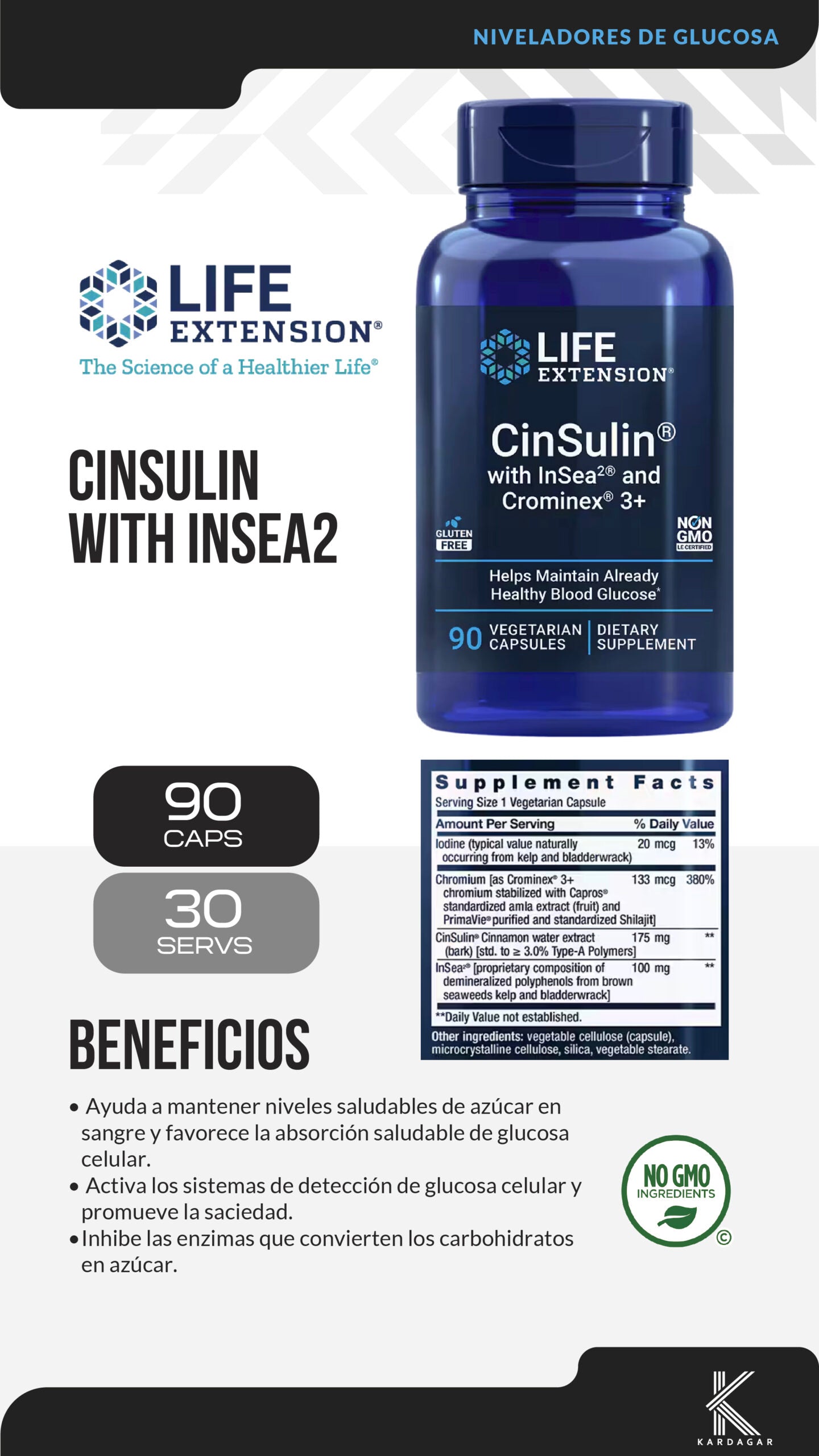 🔬 SINERGIA DE EXTRACTOS: Combina CinSulin® (canela) con InSea2® (algas marinas) y Crominex® 3+ para un refuerzo metabólico de triple acción.