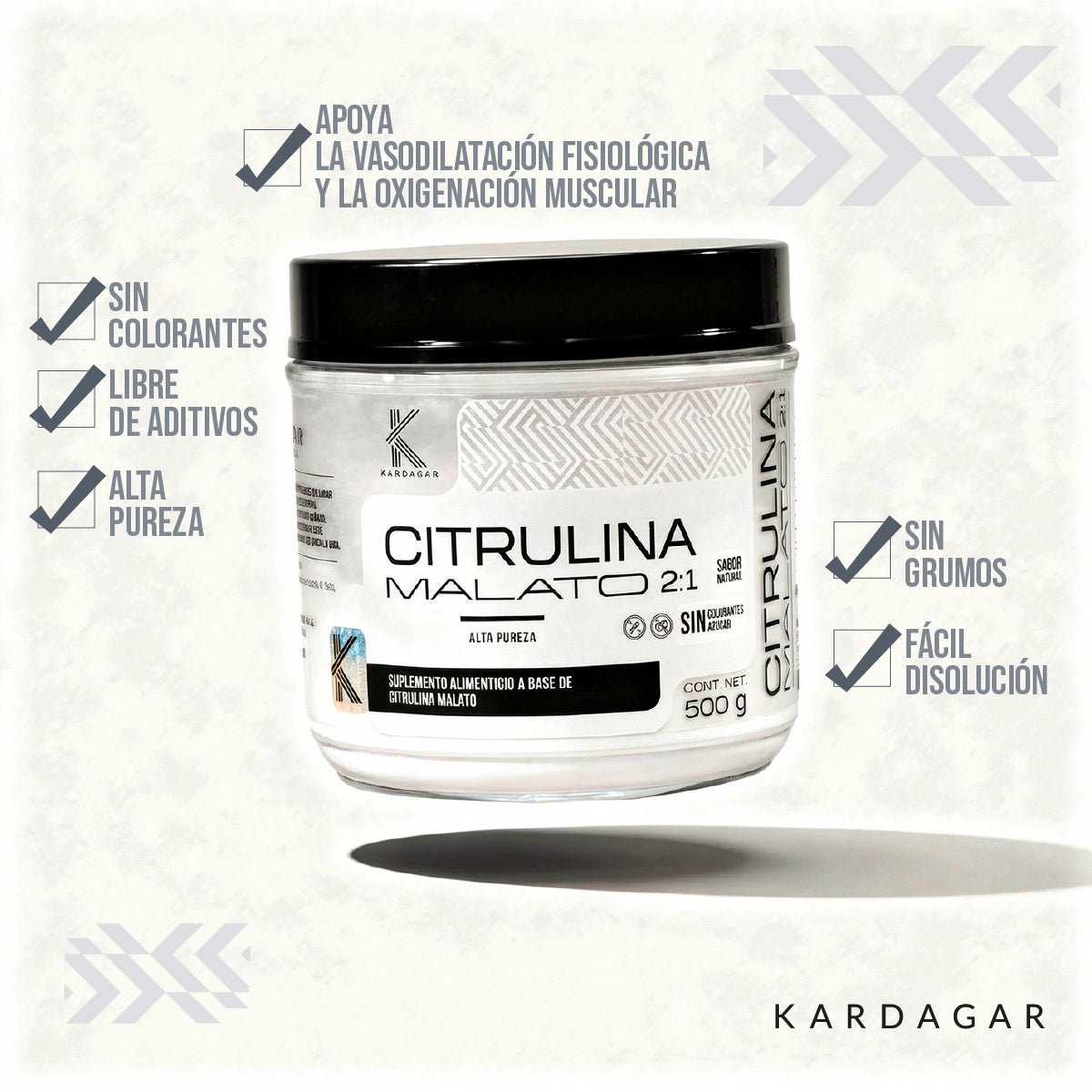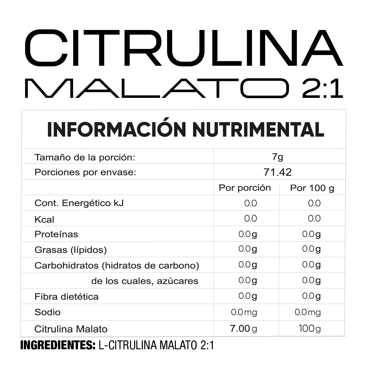 🧪 Pureza Técnica: 100% Citrulina Malato 2:1, sin sabor, azúcar ni edulcorantes.