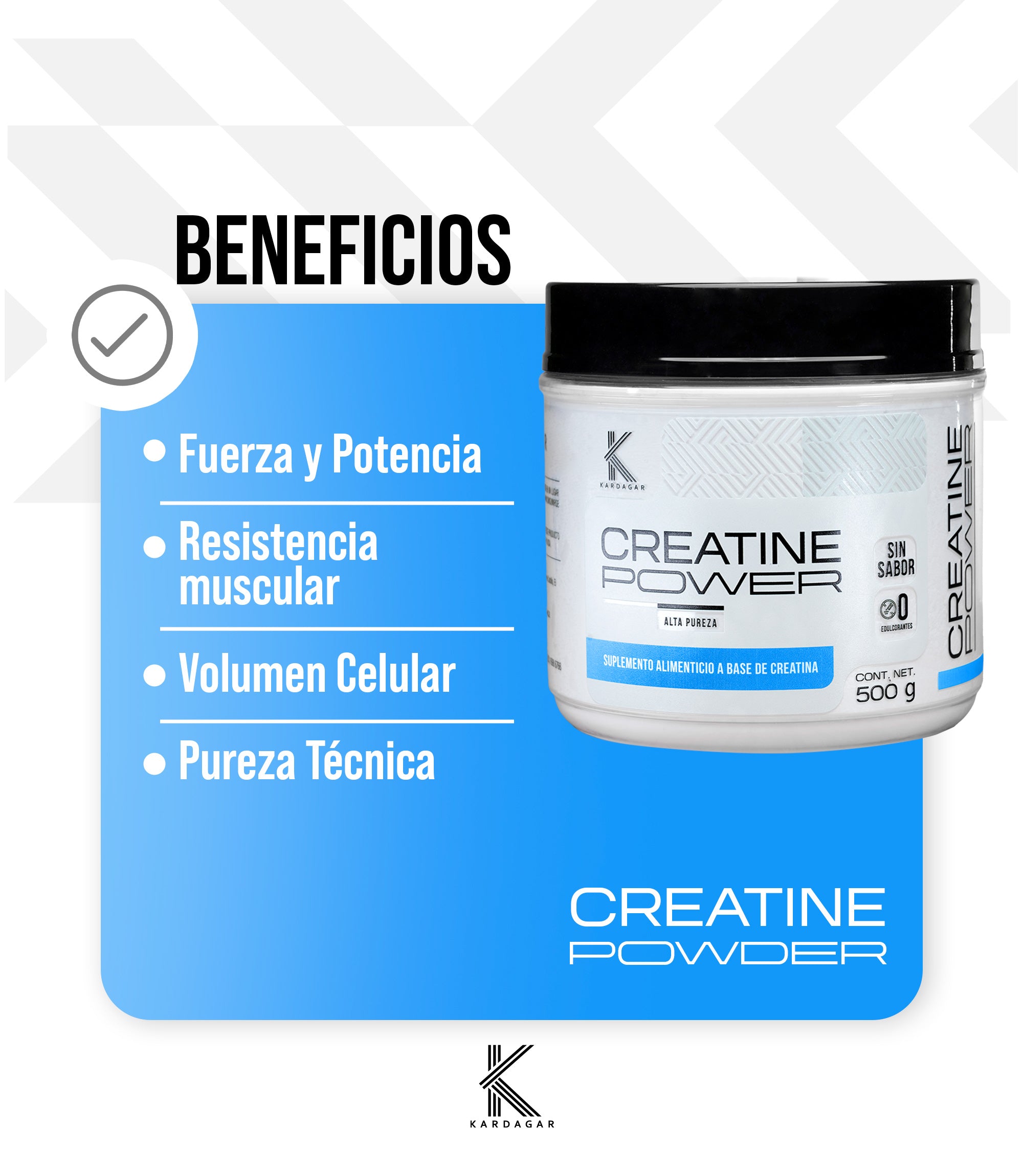 🧪 Pureza Técnica: 100% Creatina Monohidratada micronizada, libre de sabor, azúcar, edulcorantes y rellenos.